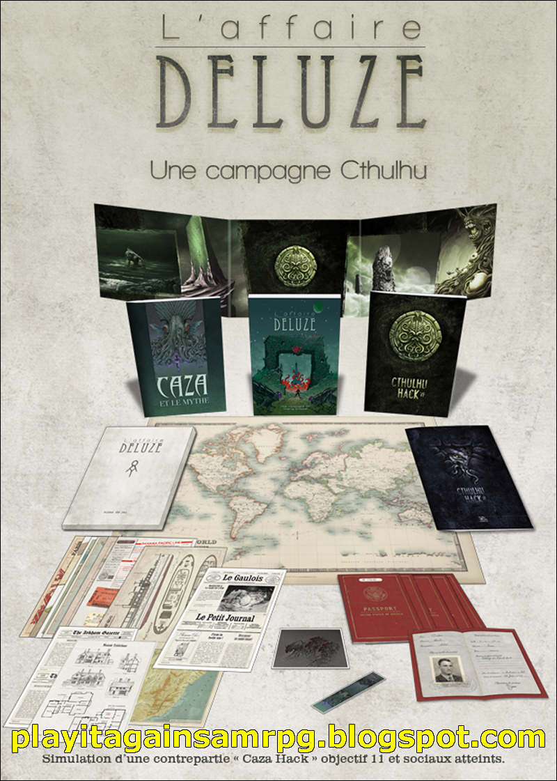 L'Affaire Deluze es una campaña ambientada en el imaginario lovecraftiano, en la que los personajes recorrerán de Arkham a Sudamérica, de París a Australia, y tierras mucho más desconocidas y peligrosas. La campaña está diseñada utilizando el sistema de Cthulhu Hack que, en caso de no disponer de él, es posible comprar (la edición francesa, claro).